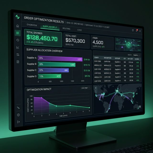 Create a purchase request and let the system do the math. We'll show you exactly how to split the order to get the lowest total cost across all suppliers.