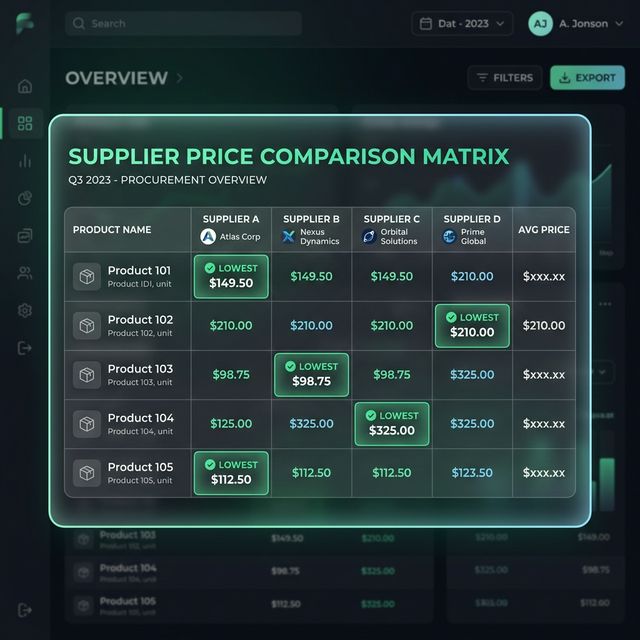 Input quotes from your vendor network. Our system automatically normalizes prices across different packaging sizes to ensure apples-to-apples comparison.